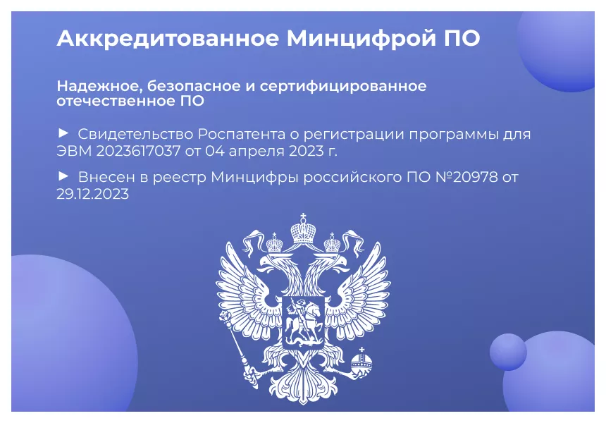 отечественного ПО №20978 от 29.12.2023, что гарантирует надежность и безопасность